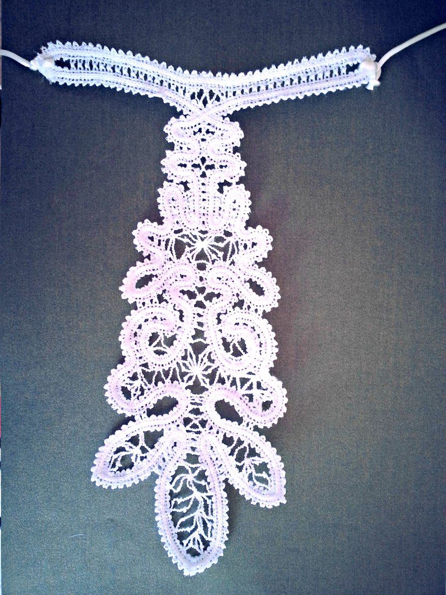 - Materiál: Sněhově bílá textilní krajka s propracovanými florálními a geometrickými motivy. Příjemná na nošení přímo na kůži.