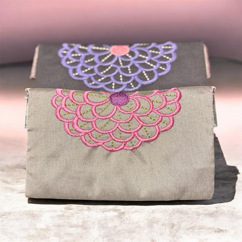 Příběh tohoto kousku:"Každý květ má svůj čas, kdy se otevře světu. Tato dvojice taštiček vypráví příběh o dvou podobách jedné zahrady. Zatímco ta světlejší zachycuje energii ranního slunce a svěžest rozkvetlých okvětních lístků, ta tmavší v sobě nese klid podvečerního vánku a tajemství stínů. Jsou to společnice pro ženy, které milují přírodu v jejích proměnách a chtějí mít u sebe kousek elegance, který nikdy neuvadne. Kousek pro radost z každého otevření."Vlastnosti a detaily: