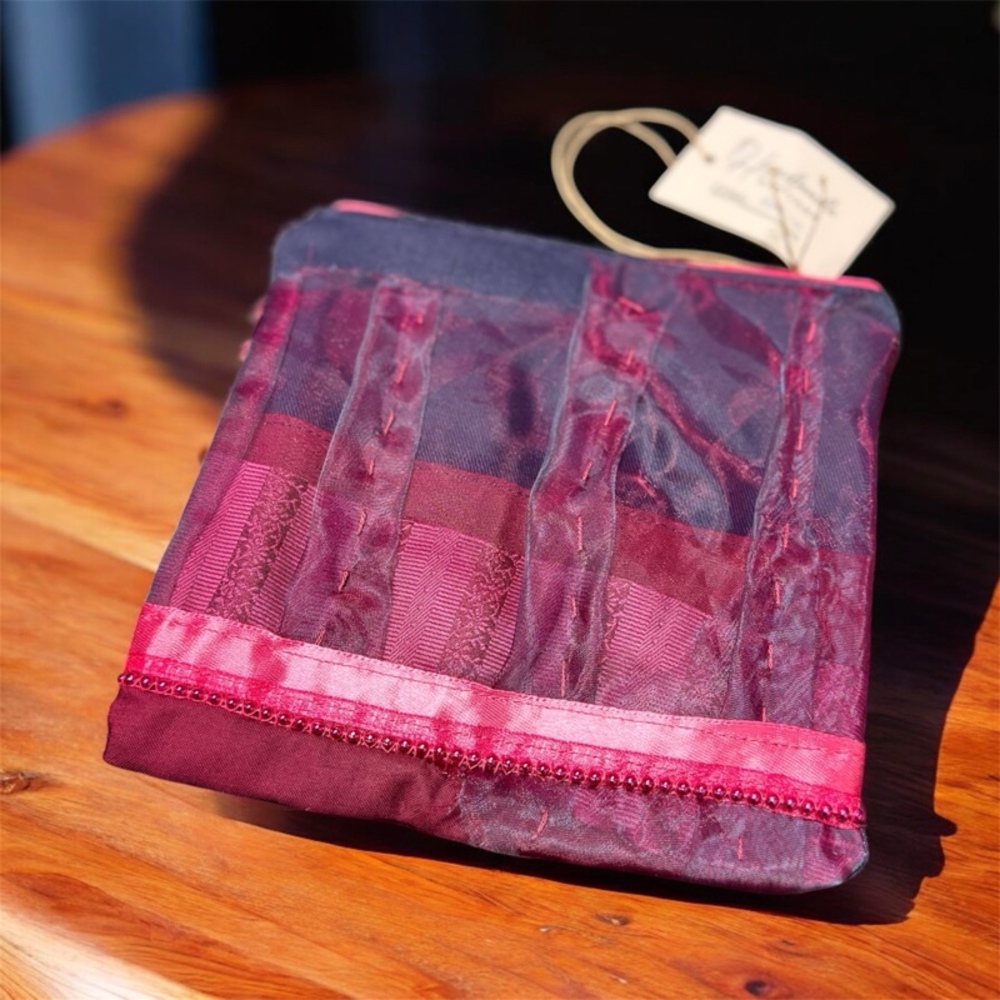 - Zpracování: Praktický růžový zip dokonale ladí s barvou výšivky a zajišťuje, že taštička tvoří jeden harmonický celek. Nechybí ani poutko pro snadné nošení nebo zavěšení.
