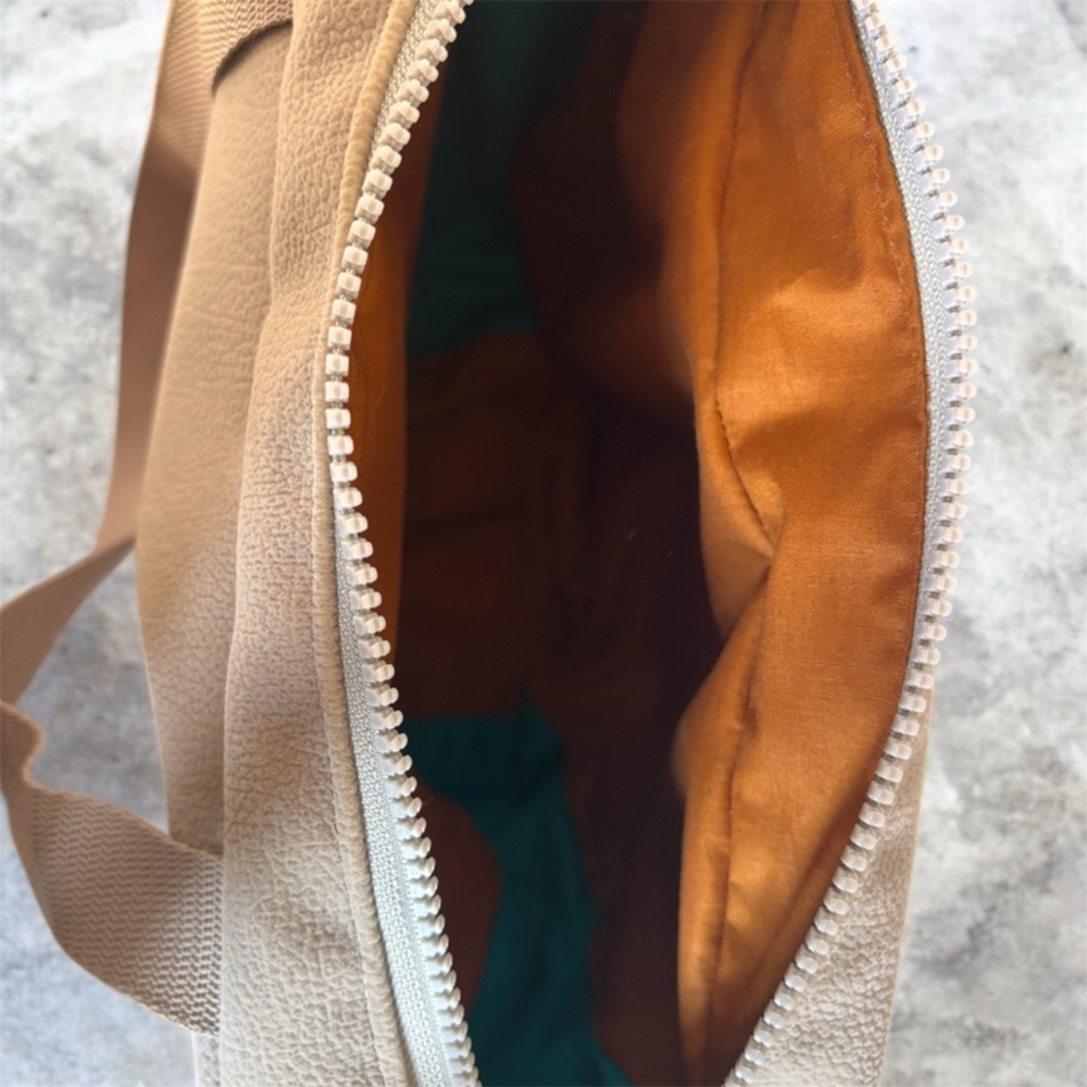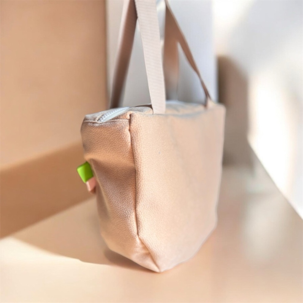 - Materiálová odolnost: Vyrobeno z vysoce kvalitní potahové látky v pískovém odstínu s jemným prošíváním. Materiál je pevný, drží tvar a je velmi odolný proti oděru, což z kabelky dělá ideálního společníka pro každodenní nošení.