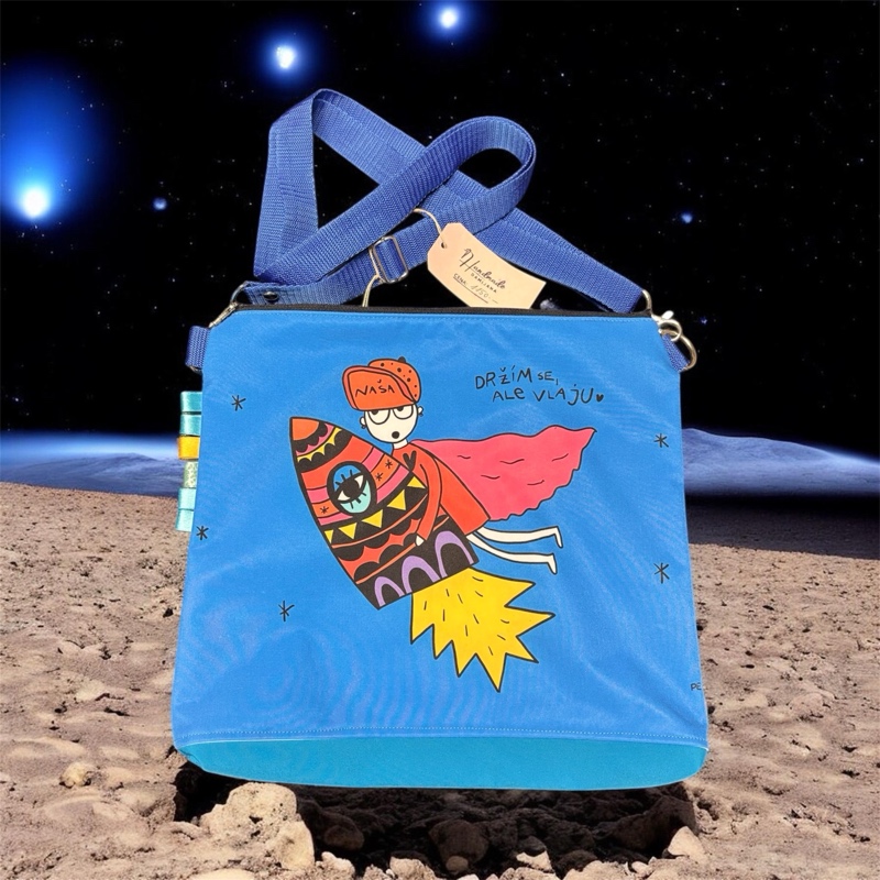 Hvězdný jezdec (Modrá softshellová taška s potiskem)