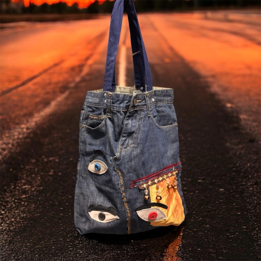Pohled do duše denimu- Kabelka s výšivkou